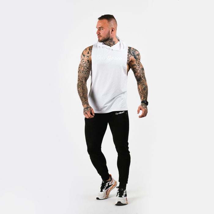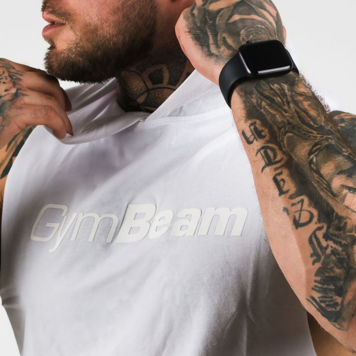 Ανδρικό Αμάνικο Top White Με Κουκούλα - GymBeam