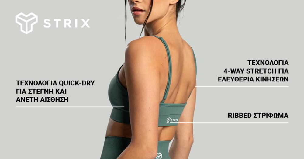 Το σουτιέν διαθέτει δύο ρυθμιζόμενες τιράντες σπαγγέτι, επιτρέποντάς σας να το διαμορφώσετε σύμφωνα με τις προτιμήσεις σας. Ο σχεδιασμός συμπληρώνεται από μια καλαίσθητη στρογγυλή λαιμόκοψη, η οποία ενισχύει τη συνολική κομψή εμφάνιση. Ένα σημαντικό πλεονέκτημα του σουτιέν είναι ο μινιμαλιστικός του σχεδιασμός. Ο μονόχρωμος σχεδιασμός συμπληρώνεται από ένα κομψό λογότυπο STRIX στο πίσω μέρος και ένα διακριτικό λογότυπο στο μπροστινό μέρος. Συνδυάζεται εύκολα και είναι ιδανικό με σορτς, κολάν ή φόρμες. Ωστόσο, οι τιράντες σπαγγέτι κρύβονται επίσης καλά κάτω από τα καθημερινά ρούχα. Αν ψάχνετε για ένα άνετο σουτιέν τόσο για σπορ όσο και για αναψυχή, μόλις το βρήκατε. Τα ρούχα χωρίς ραφές προσφέρουν απλά καθαρές, μινιμαλιστικές γραμμές και ελκυστική εμφάνιση, κάνοντάς σας να δείχνετε κομψή ακόμα και όταν γυμνάζεστε.