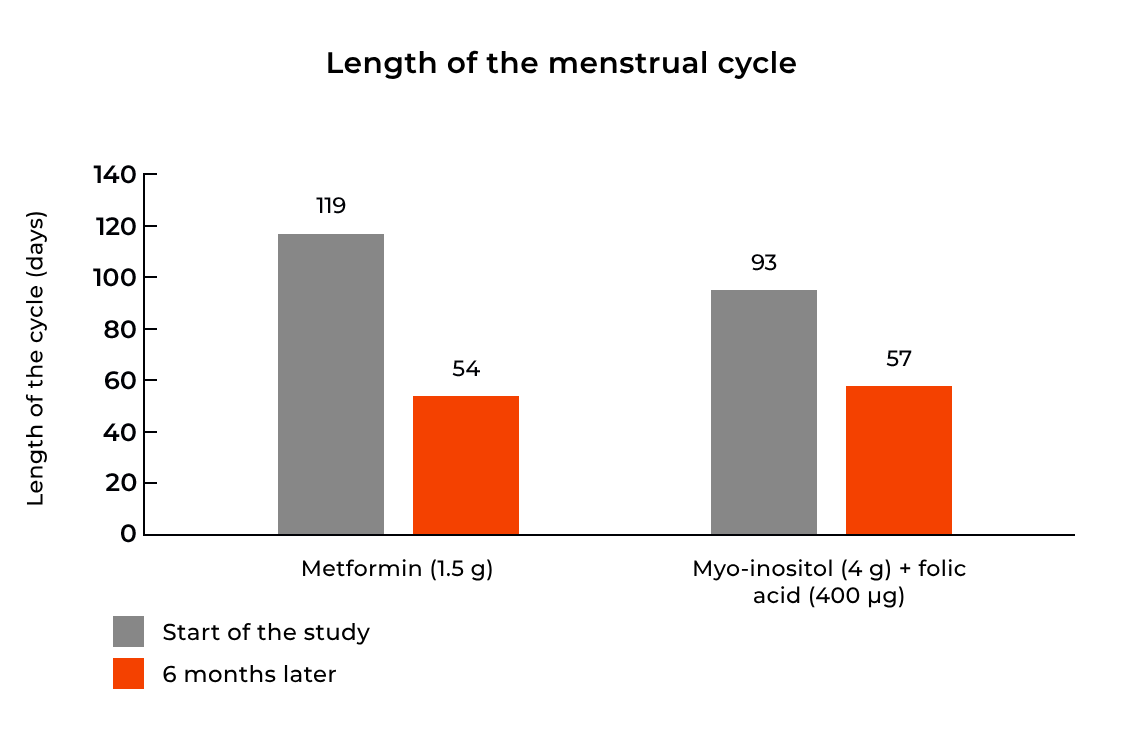 - Η διάρκεια του κύκλου μειώθηκε κατά 45% για τη μετφορμίνη και κατά 38,7% για την ινοσιτόλη.