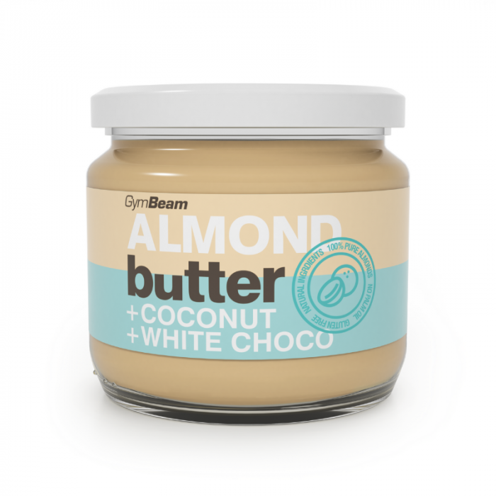 Το βούτυρο αμυγδάλου με καρύδα και λευκή σοκολάτα είναι μια νόστιμη λιχουδιά που θα σας μαγέψει με την εξαιρετική της γεύση αμυγδάλου, η οποία συμπληρώνεται τέλεια από την καρύδα και τη λεία λευκή σοκολάτα. Επιπλέον,είναι μια πηγή ακόρεστων λιπαρών οξέων και έχει υψηλή περιεκτικότητα σε φυτικές ίνες. Μπορείτε να το απολαύσετε μόνο του, να το απλώσετε σε τοστ, να το προσθέσετε σε τηγανίτες ή σε διάφορες άλλες συνταγές fitness.