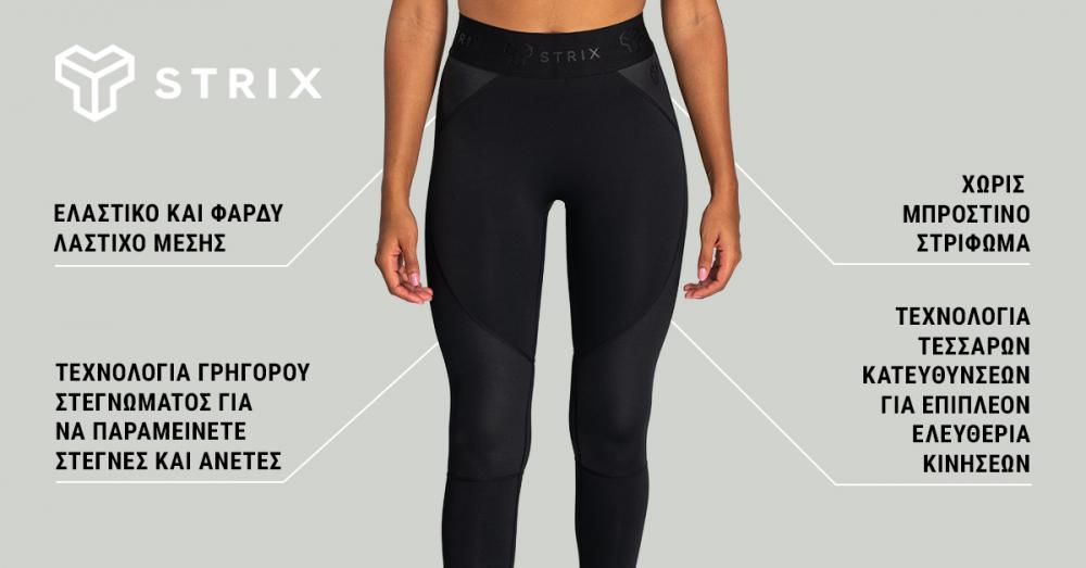 Αν σας αρέσει η μόδα, σίγουρα θα εκτιμήσετε τον κομψό μονόχρωμο σχεδιασμό του, διακοσμημένο με γυαλιστερά πάνελ και λογότυπα της STRIX τοποθετημένα στη μέση. Αυτό το διαχρονικό κομμάτι είναι σίγουρο ότι θα παραμείνει μοντέρνο και συνδυάζεται εύκολα με άλλα ρούχα. Αν θέλετε να ολοκληρώσετε το σετ σας, μην χάσετε το ρυθμιζόμενο σουτιέν μας ή το ασορτί τοπ από την ίδια γραμμή.