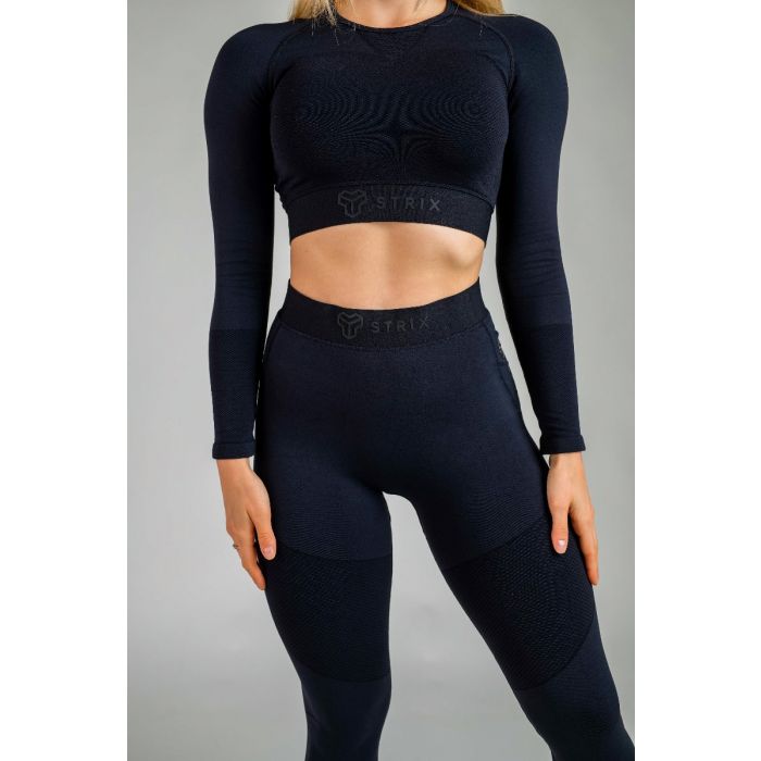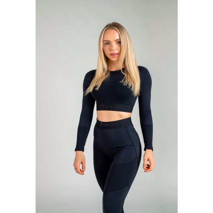 Το Γυναικείο Λειτουργικό Top Infinity κατασκευάζεται χρησιμοποιώντας τη μοναδική τεχνολογία χωρίς ραφές, η οποία διασφαλίζει ότι θα απολαμβάνετε πάντα τη μέγιστη άνεση ανεξάρτητα από τη δραστηριότητα που επιλέγετε. Το υλικό αποτελείται από έναν συνδυασμό νάιλον και ελαστίνης, που σημαίνει ότι απορροφά ικανοποιητικά τον ιδρώτα και προσαρμόζεται τέλεια στο σώμα σας. Το επάνω μέρος διαθέτει επιφάνειες από διχτυωτό ύφασμα, οι οποίες αυξάνουν την αναπνευσιμότητα. Το τοπ υπερέχει περαιτέρω με το πρωτότυπο design του - πρόκειται για ένα κοντό top με μακριά μανίκια, το οποίο σταματά κάτω από το στήθος, τονίζοντας τους τονισμένους κοιλιακούς σας. Το κάτω μέρος είναι εξοπλισμένο με μια φαρδιά ελαστική ταινία, η οποία εξασφαλίζει ότι το top παραμένει σταθερό, ανεξάρτητα από το πόσο έντονη είναι η προπόνησή σας. Τέλος, το top είναι διακοσμημένο με το κομψό λογότυπο της STRIX, το οποίο δείχνει σε όλους ότι δουλεύετε συνεχώς σκληρά για τον εαυτό σας.