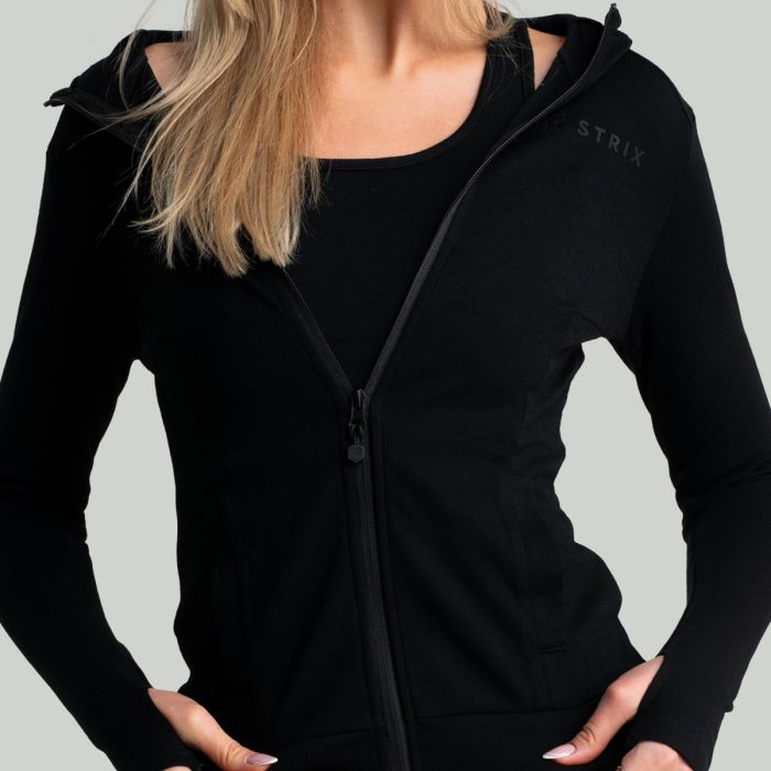 Πέρα από το εξαιρετικό υλικό, αυτό το κομμάτι θα σας ενθουσιάσει επίσης με την εφαρμογή του. Είναι εξαιρετικά ελαστικό και προσαρμοσμένο στο γυναικείο σώμα. Με αυτόν τον τρόπο, το φούτερ με κουκούλα δεν περιορίζει την κίνηση και μπορείτε να απολαύσετε όλες τις δραστηριότητες. Είτε πηγαίνετε για βόλτα, πεζοπορία, τρέξιμο, ποδηλασία, σκι ή άλλα αθλήματα, το φούτερ με κουκούλα θα σας προσφέρει πάντα εξαιρετικές υπηρεσίες. Ένα ακόμη πρακτικό χαρακτηριστικό περιλαμβάνει μια διαμορφωμένη κουκούλα που μένει στη θέση της, σας κρατάει ζεστούς και σας βοηθά να εστιάζετε μόνο στην απόδοσή σας κατά την άσκηση. Το φούτερ διαθέτει επίσης φερμουάρ, τρύπες για τους αντίχειρες και δύο πλαϊνές τσέπες για να ζεσταίνετε τα χέρια σας το χειμώνα ή να κρατάτε μικρά αντικείμενα που θέλετε να έχετε κοντά σας. Τέλος, διαθέτει ένα απλό μονόχρωμο σχέδιο που είναι εύκολο να συνδυάσετε και να ταιριάξετε. Έτσι, θα ταιριάξει τέλεια σε κάθε αθλητικό και ψυχαγωγικό ντύσιμο.