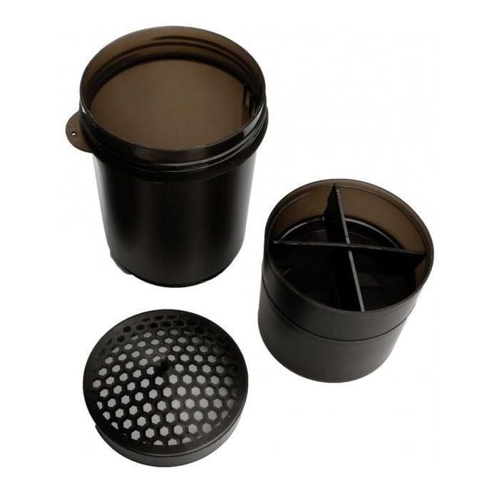 Το Μαύρο Σέικερ Πολυ-Αποθήκευσης με περιεκτηκότητα 600 mlαποτελείται από τρία διαμερίσματα - ένα μίξερ σκόνης για συμπληρώματα διατροφής, διαχωριστικό για δισκία και χάπια και ένα τρίτο διαμέρισμα για την αποθήκευση συμπληρωμάτων σε σκόνη. Διαθέτει κλασικό καπάκι με βιδωτό κάλυμμα και εσωτερικό φίλτρο, έτσι ώστε όλα τα αγαπημένα σας συμπληρώματα να αναμιγνύονται τέλεια. Είναι ένα ποιοτικό και εύχρηστο μπουκάλι σέικερ όπου μπορείτε να αποθηκεύσετε όλα τα συμπληρώματα διατροφής που χρειάζεστε για όλη την ημέρα. Είναι κατασκευασμένο από πλαστικό υψηλής ποιότητας χωρίς BPA και DEHP.