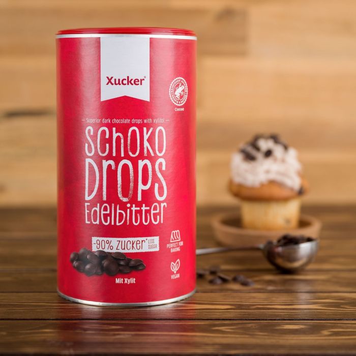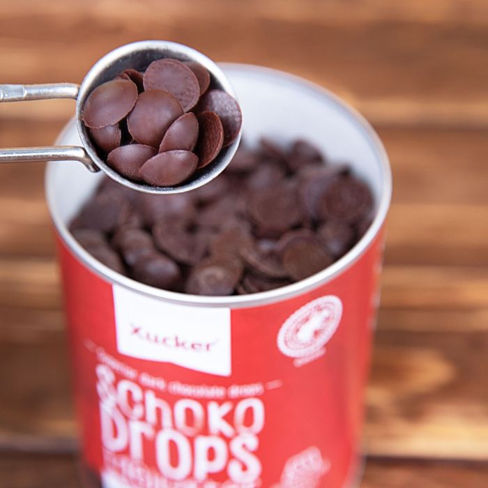 Οι Σταγόνες Μάυρης Σοκολάτας είναι κομμάτια μαύρης σοκολάτας χωρίς προσθήκη ζάχαρης, οι οποίες γλυκαίνονται μόνο με ξυλιτόλη. Η ξυλιτόλη είναι φυσική γλυκαντική ουσία, η οποία χαρακτηρίζεται από χαμηλό γλυκαιμικό δείκτη και περίπου τον μισό θερμιδικό δείκτη σε σύγκριση με τη συμβατική ζάχαρη. Τα κομμάτια σοκολάτας είναι ιδανικά για το ψήσιμο μπισκότων, muffins, κέικ, για την παρασκευή καλυμμάτων σοκολάτας, σπιτικό μούσλι, αλλά είναι επίσης κατάλληλα για την ενίσχυση της γεύσης του πόρριτζ ή του γιαουρτιού.