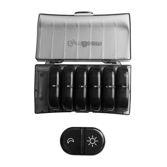 Weekly PillBox είναι μια πρακτική και ανθεκτική θήκη σχεδιασμένη για τη φύλαξη συμπληρωμάτων διατροφής με τη μορφή ταμπλετών ή καψουλών. Διαθέτει 7 ξεχωριστά κουτιά για χάπια με δύο διαμερίσματα για τα ημερήσια και τα βραδινά συμπληρώματα το καθένα. Αυτό το χαρακτηριστικό σας δίνει τη δυνατότητα να διαχειρίζεστε εύκολα και να προγραμματίζετε την πρόσληψη βιταμινών ή άλλων συμπληρωμάτων καθ' όλη τη διάρκεια της εβδομάδας,από Δευτέρα έως Κυριακή.Αυτό το προϊόν μπορεί να αποτελέσει έναν πολύτιμο συνεργάτη που θα σας βοηθήσει να πετύχετε τους στόχους σας.