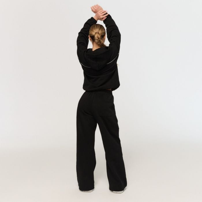 Αυτή η φόρμα ξεχωρίζει για τη σοφιστικέ wide-leg γραμμή της, η οποία χαρακτηρίζεται από φαρδιά μπατζάκια. Αυτά είναι διακοσμημένα στα πλάγια με διακριτικό κοντράστ piping, το οποίο μακραίνει οπτικά τα πόδια και δίνει σε όλο το κομμάτι μια κομψή retro πινελιά. Τα μπατζάκια τελειώνουν με ένα κορδόνι περίσφιξης και κλιπ (toggle), επιτρέποντάς σου να φοράς τη φόρμα με δύο τρόπους: είτε ως ένα άνετο, φαρδύ παντελόνι είτε σφιγμένο στους αστραγάλους για να δημιουργήσεις το εξαιρετικά δημοφιλές "parachute" effect.