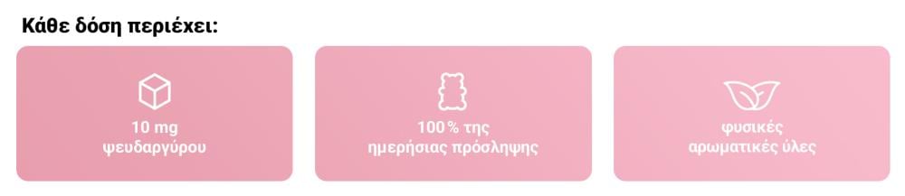 - 10 mg ψευδαργύρου (100% της συνιστώμενης ημερήσιας πρόσληψης)